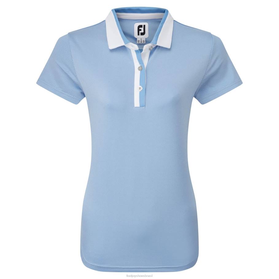 - tecido jacquard elástico e liso em todo o padrão birdeye, carcela e gola coordenadas em dois tons, prata ornamental, botões fj, tecnologia de absorção de umidade, afasta a umidade do corpo li>