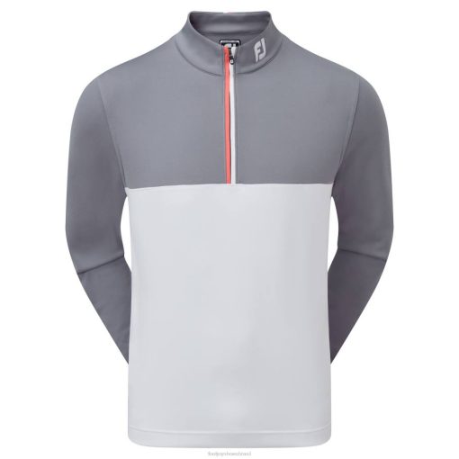 - estilo em bloco de cores com zíper contrastante em dois tons e detalhes na gola traseira