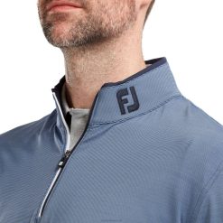 - tecido elástico de malha jérsei supermacio em todo o padrão de microlistras de dois tons, construção com meio zíper em dois tons, gola contrastante e detalhes de ventilação lateral, gola coordenada e encaixe traseiro, logotipo fj’s easy cuidar do tecido para minimizar rugas