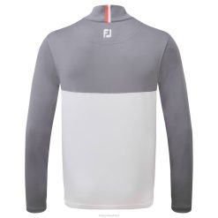 - estilo em bloco de cores com zíper contrastante em dois tons e detalhes na gola traseira