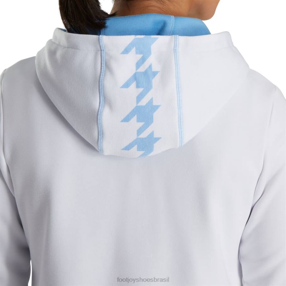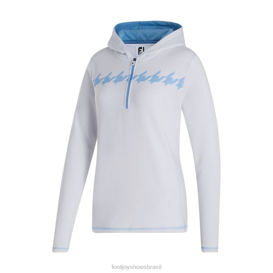 ZHZH2457 moletom feminino com capuz e meio zíper azul claro branco houndstooth Footjoy houndstooth azul claro branco
