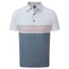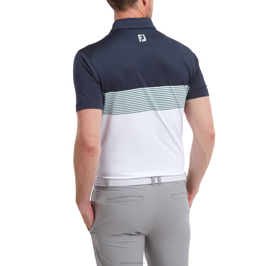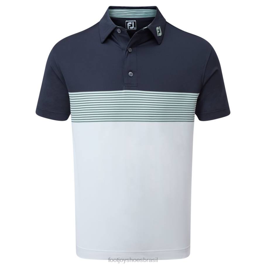 - estilo color block com listras multicoloridas no peito e gola combinando